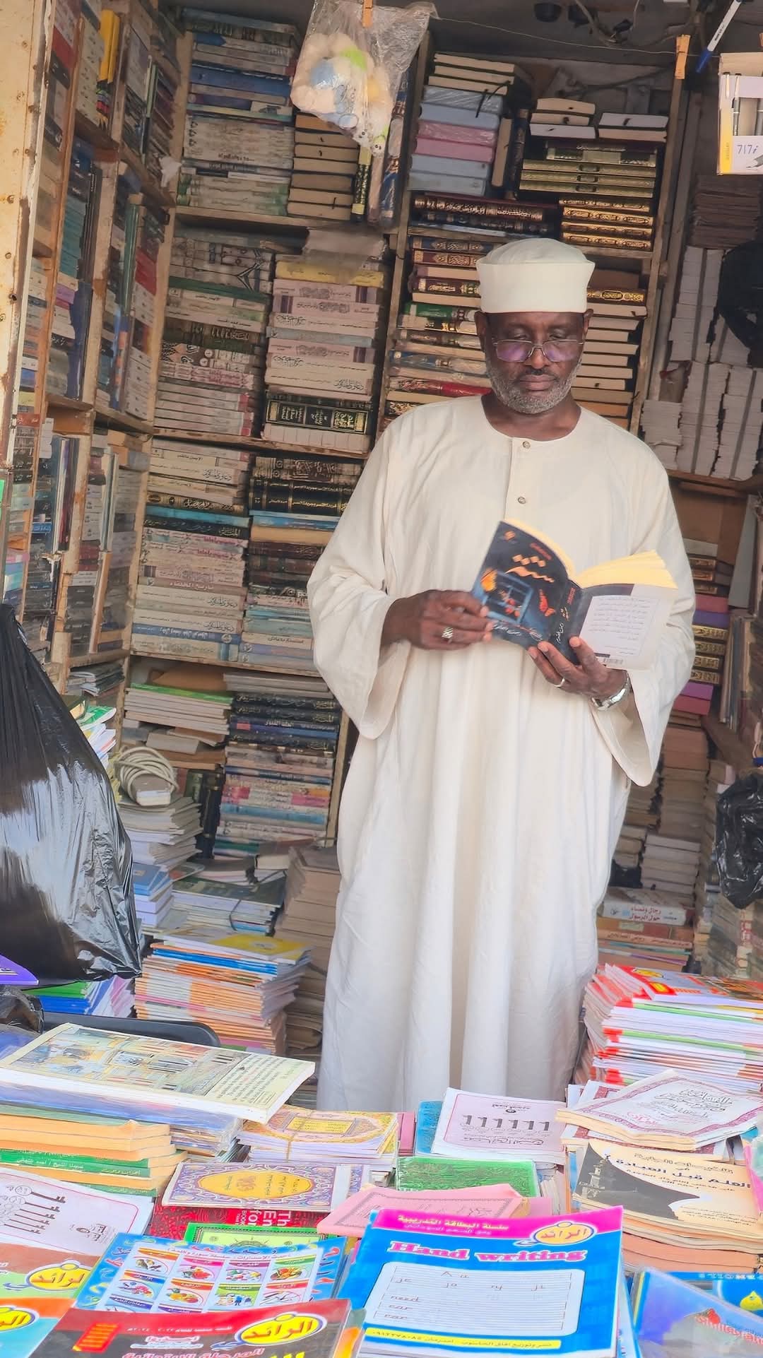 ■ مساحة المكتبة صغيرة مكاناً لكنها متسعة بالمعاني والروائع التي تغطي علي عشوائية سوق مدني وضوضاء أصواته المزعجة والغريبة .. قبل أن أغادر المكتبة أعطاني صاحبها نسخة قديمة من رواية ستة لأيمن العتوم وهو كاتب أنصح محبي القراءة العميقة بمتابعته ..